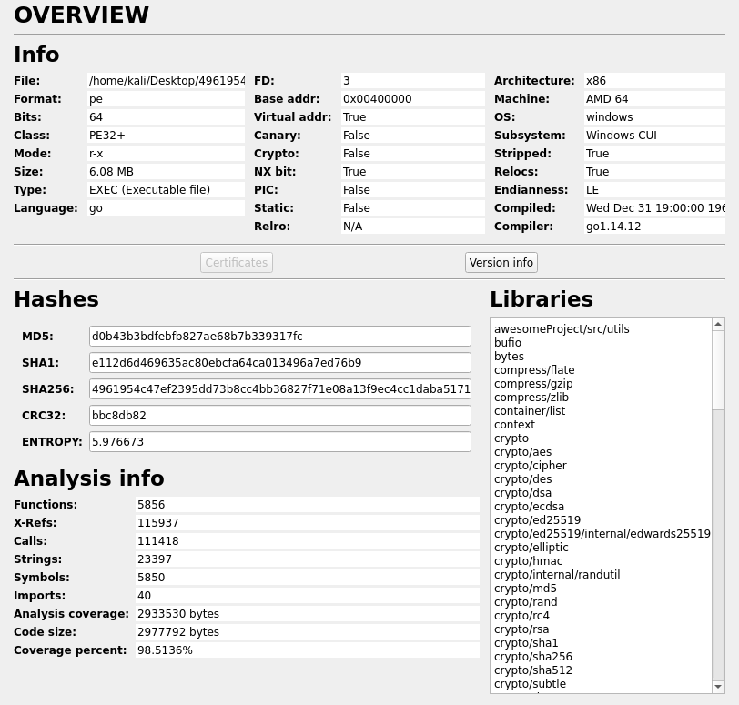 不同Go版本,具有不同的特性,特别是在一些版本底层改变较大,编写、编译生成的二进制程序有一定的差异性。对于手动分析来说,知道Go二进制程序是用哪个Go版本编译是很重要的。一般来说,查看Go二进制程序是哪个Go版本,可使用以下两种方法: