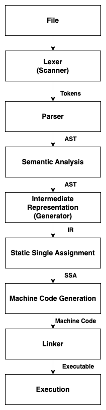 - 机器码生成(Machine Code):优化的中间码被转换为机器码。编译器生成汇编代码或直接生成机器码,具体取决于目标体系结构