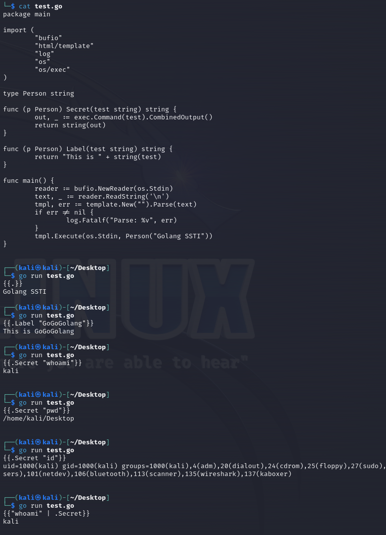 tmpl.Execute(os.Stdin, Person("Golang SSTI"))