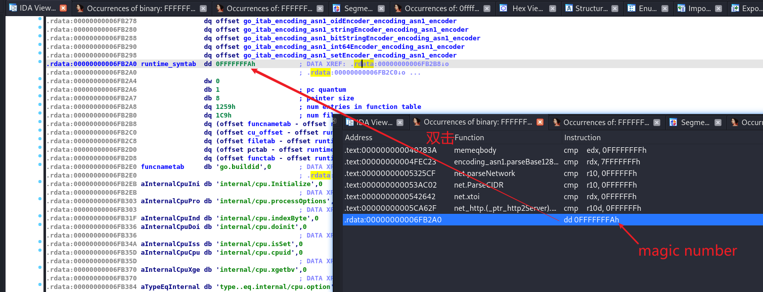 使用IDA自带的解析功能,可以清楚看到pclntab 头的排列情况: